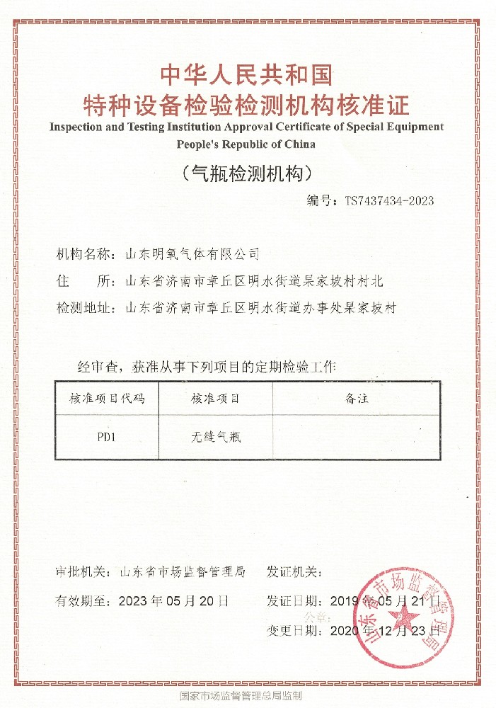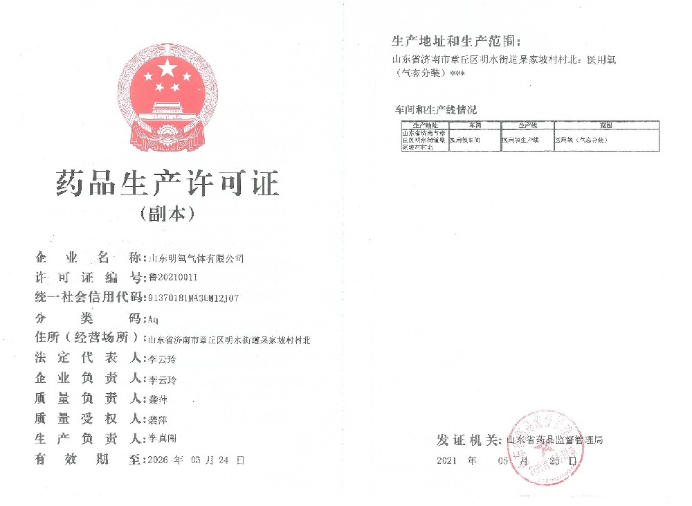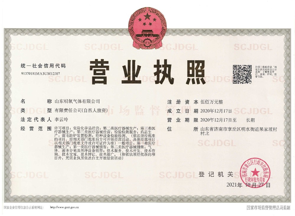 ??? 山東明氧氣體有限公司的前身為始建于1993年的章丘市明水氧氣廠,2020年12月企業(yè)由民營獨(dú)資轉(zhuǎn)型升級(jí)為山東明氧氣體有限公司,企業(yè)進(jìn)入新的發(fā)展階段。公司位于山東省濟(jì)南市章丘區(qū)明水街道杲家坡村村北,占地面積4000平方米,注冊資金500萬元,固定資產(chǎn)投資3000萬元,主要經(jīng)營項(xiàng)目為醫(yī)用氧氣、工業(yè)氧氣、氮?dú)?、高純氮?dú)?、氬氣、高純氬氣、高純氦氣、二氧化碳、混合氣體等各種工業(yè)氣體、高純氣體、混合氣體的充裝銷售、各類氣瓶的銷售、安全閥校驗(yàn)、鋼質(zhì)無縫氣瓶的檢驗(yàn)等。